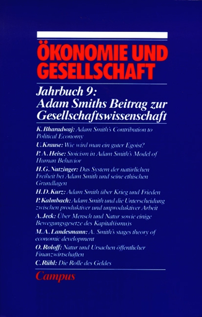 Smiths Beitrag zur Beantwortung dieser Grundfragen der Sozialwissenschaft wird im folgenden am Beispiel einiger der großen Themen seines Werkes einzuschätzen versucht. Krishna Bharadwaj (Jawaharlal Nehru Universität Delhi) erörtert das Smithsche System der politischen Ökonomie, dessen sozialphilosophische Perspektive sowie seine um das Konzept des gesellschaftlichen Überschußprodukts kreisende Erklärung der Verteilung des nationalen Reichtums. Sie befaßt sich anschließend mit der Kritik und Weiterentwicklung des Smithschen Ansatzes durch Ricardo und Marx und wendet sich gegen den Vereinnahmungsversuch seiner Lehre durch die neoklassische Theorie von Angebot und Nachfrage. Ulrich Krause (Universität Bremen) diskutiert das Verhältnis von Eigeninteresse und ethischen Gefühlen. Ersteres, so seine Grundannahme, sei zusammengesetzt aus verschiedenen, zum Teil widersprüchlichen Motiven. Um alle weiteren, nicht bereits von diesem Begriff erfaßten Motive und darüber dessen Verhältnis zu den ethischen Gefühlen zu bestimmen, sei die Zerlegung des Begriffs sowie seine anschließende Rekonstitution erforderlich. Paul A. Heise (Lebanon Valley College, Annville, USA) unternimmt den Versuch, Smiths Verhältnis zur Stoa zu bestimmen. Er greift dabei auf Smiths Schriften zur Physik, Metaphysik, Logik, Ethik und Ökonomik zurück, in denen allen der Einfluß der stoischen Philosophie nachweisbar sei. Hans Nutzinger (Gesamthochschule Kassel) erörtert die ethischen Grundlagen der Smithschen ökonomischen Analyse und gelangt zu einer Neueinschätzung des berühmten "Adam Smith-Problems". Er untersucht darüber hinaus die Frage, ob bei Smith Elemente einer "materialen" Gerechtigkeitskonzeption anzutreffen sind, die über eine bloße "Tauschgerechtigkeit" hinausweisen. Heinz D. Kurz (Universität Graz) befaßt sich mit Smiths Ausführungen zu Krieg und Frieden, einem zentralen Thema seiner Studien und Spekulationen zum Prozeß menschlicher Zivilisation. Die Arbeitsteilung, für Smith einerseits der Schlüssel zu Reichtum, national wie international, ist für ihn andererseits die Ursache besorgniserregender individueller und gesellschaftlicher Deformationen. Smith beklagt insbesondere den mit der Verbreitung des "Geschäftssinns" einhergehenden Verlust an "Militärgeist". Dieser Verlust schwäche die Wehrhaftigkeit der entwickelten Gesellschaften und stelle den Fortgang des Zivilisationsprozesses in Frage. Gefragt sei die "Klugheit des Staates", dem einzigen potentiellen Retter in letzter Not.
