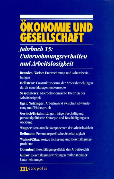 Auf dieser Basis argumentieren Gerlach und Jirjahn in ihrem Aufsatz mit dem Titel "Längerfristige Beschäftigung, personalpolitische Konzepte und Beschäftigungsentwicklung" und zeigen theoretisch und empirisch, welcher Zusammenhang zwischen innerbetrieblichen Strukturen und Prozessen und der Beschäftigungsdynamik besteht. Die strukturellen Komponenten der Arbeitslosigkeit diskutiert Wagner in seinem gleichnamigen Beitrag und begründet, inwiefern selbst ein flexibler Lohn in einer dynamischen Entwicklung keinen Marktausgleich herbeiführen kann.